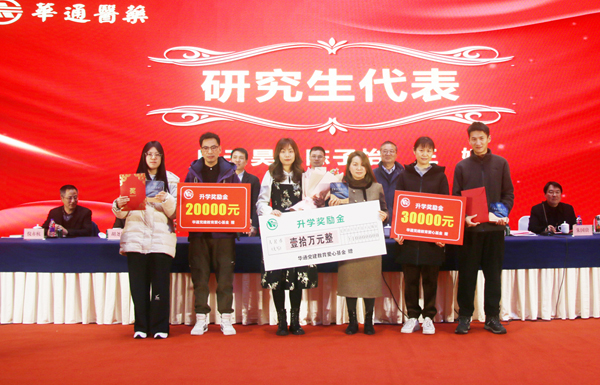 大會(huì)還舉行了“華通醫(yī)藥黨建愛心基金”職工子女升學(xué)獎(jiǎng)勵(lì)儀式,部分職工子女代表參加領(lǐng)獎(jiǎng)。2023年接受九年制義務(wù)教育、高中、本科、研究生共計(jì)67人,獎(jiǎng)勵(lì)金額42萬元。隨后,還進(jìn)行了《陽(yáng)明心學(xué)》的書籍捐贈(zèng)。